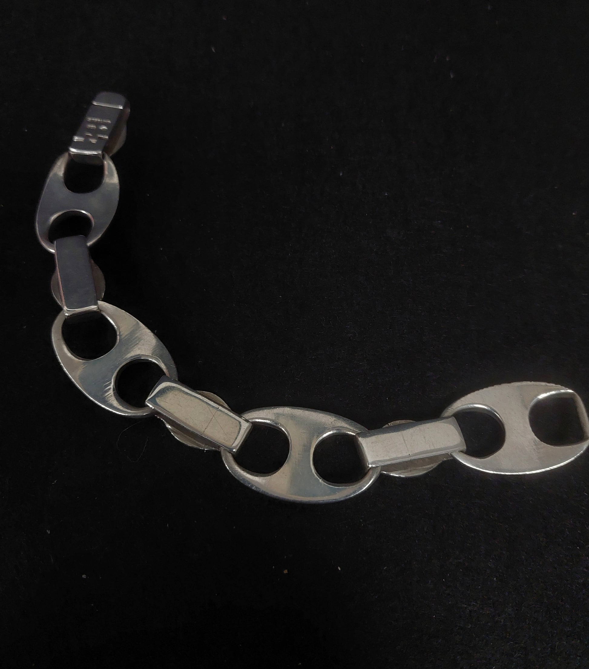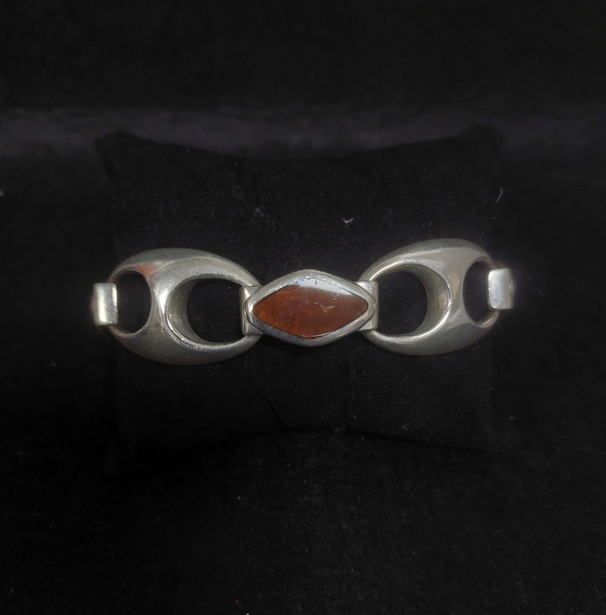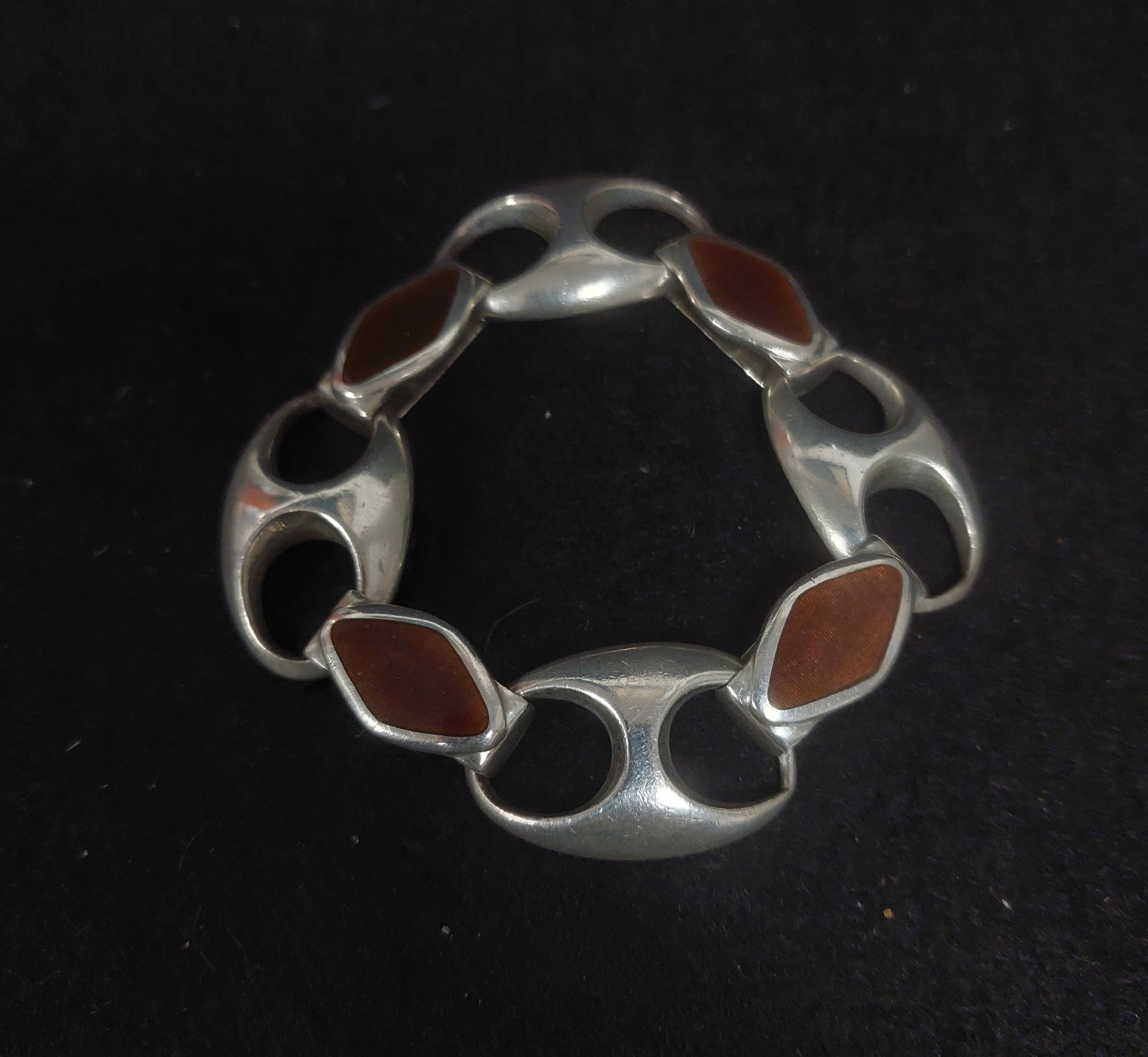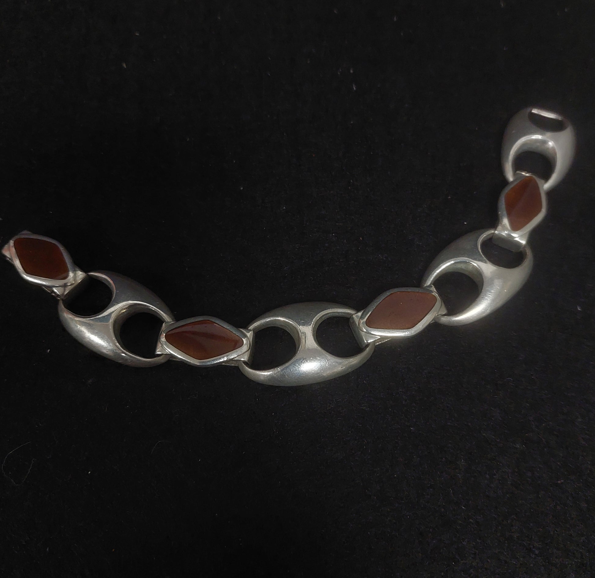 Bracciale con maglia marinara, in argento, con smalto color caramello; chiusura a pressione.