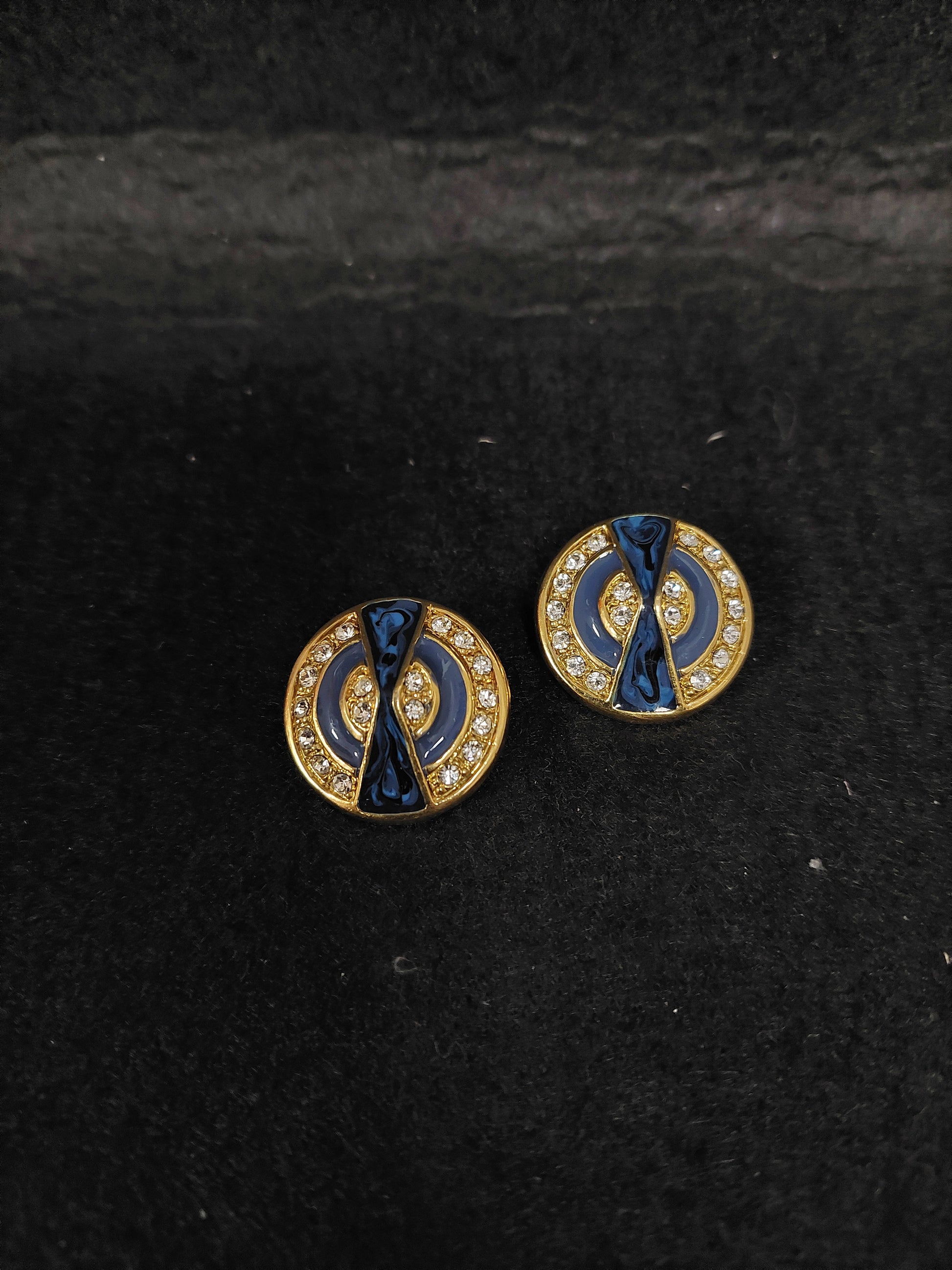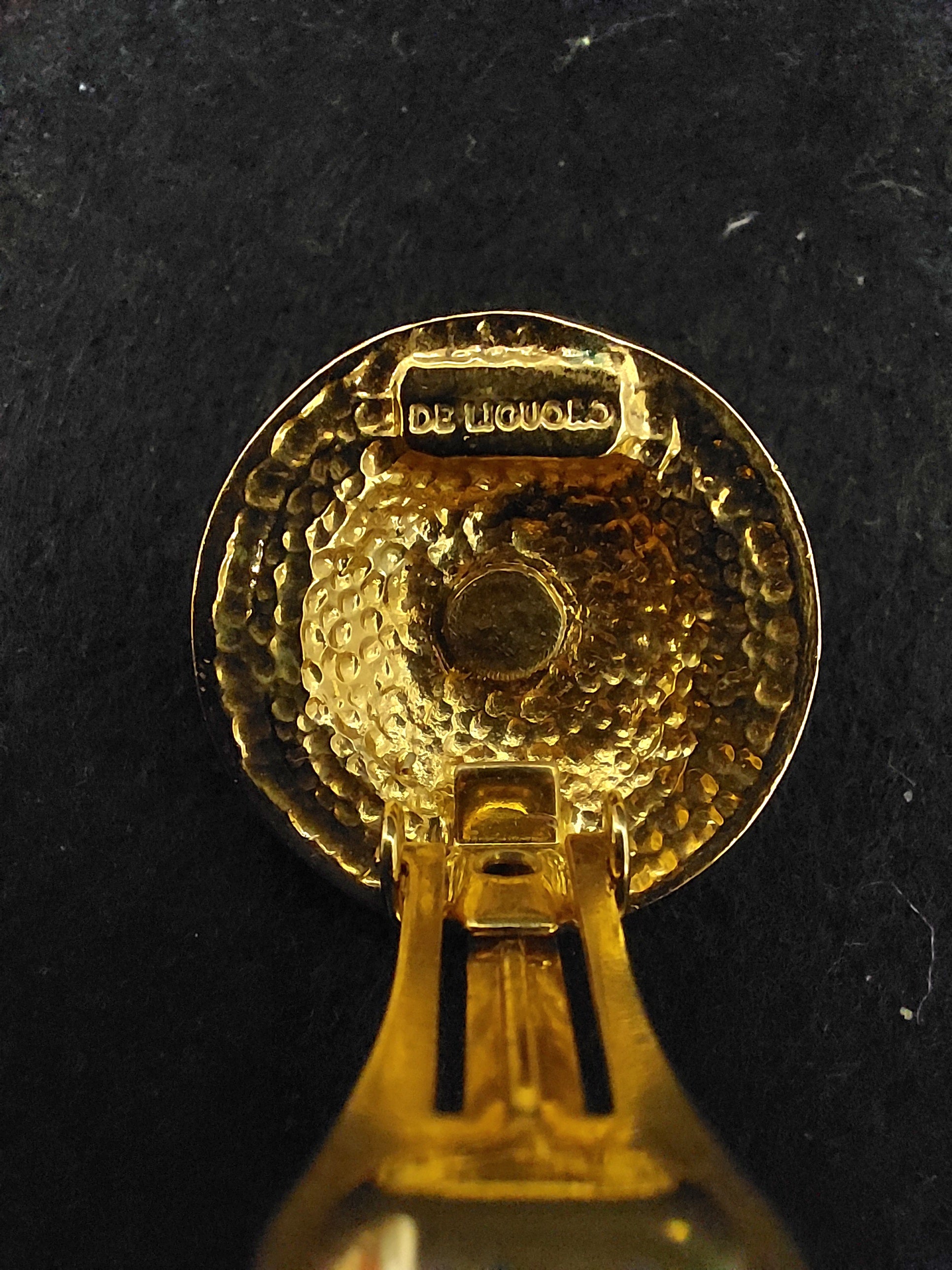 Orecchini a clip "made by" De Liguoro, in metallo dorato, smalto e strass.