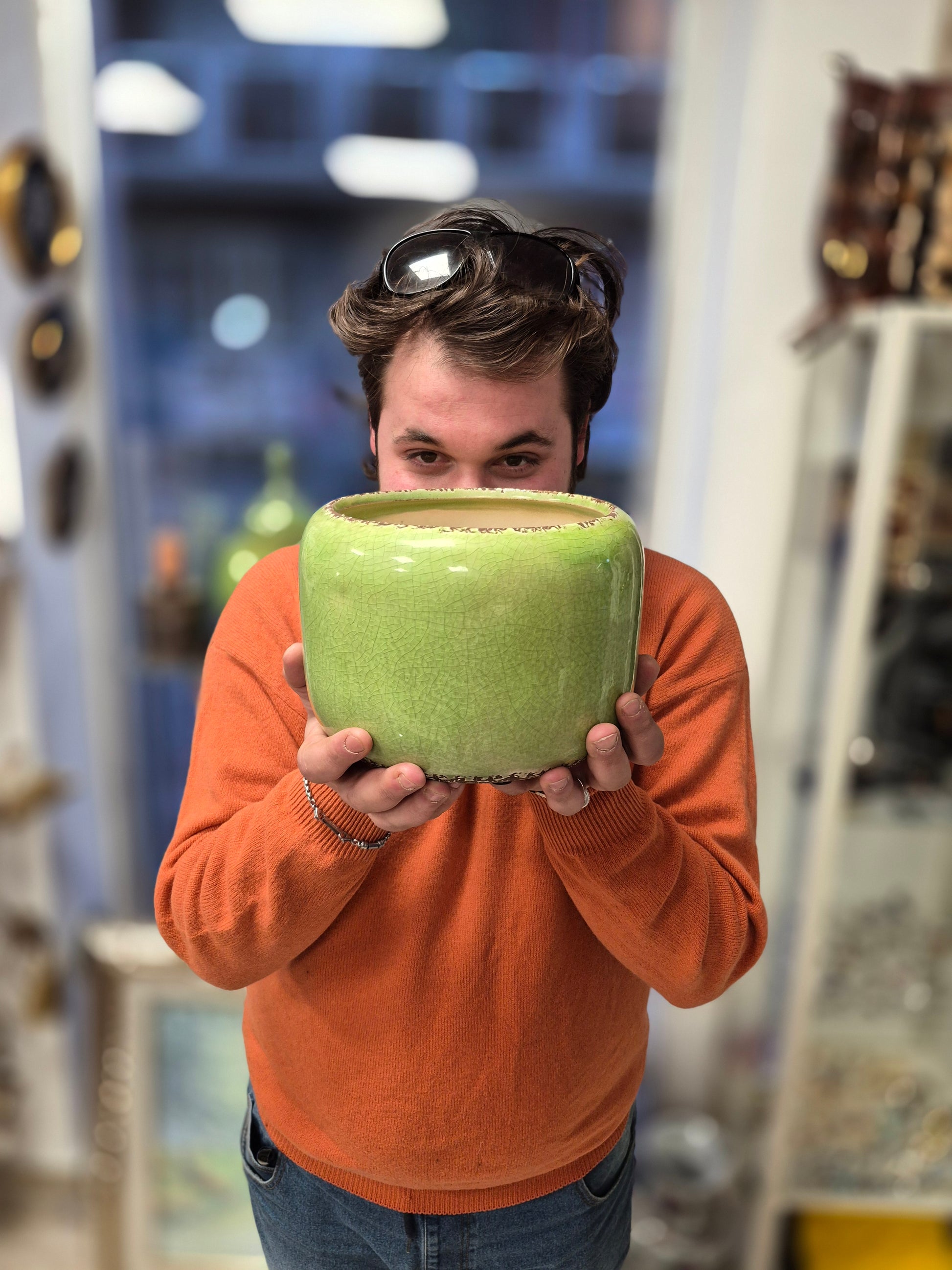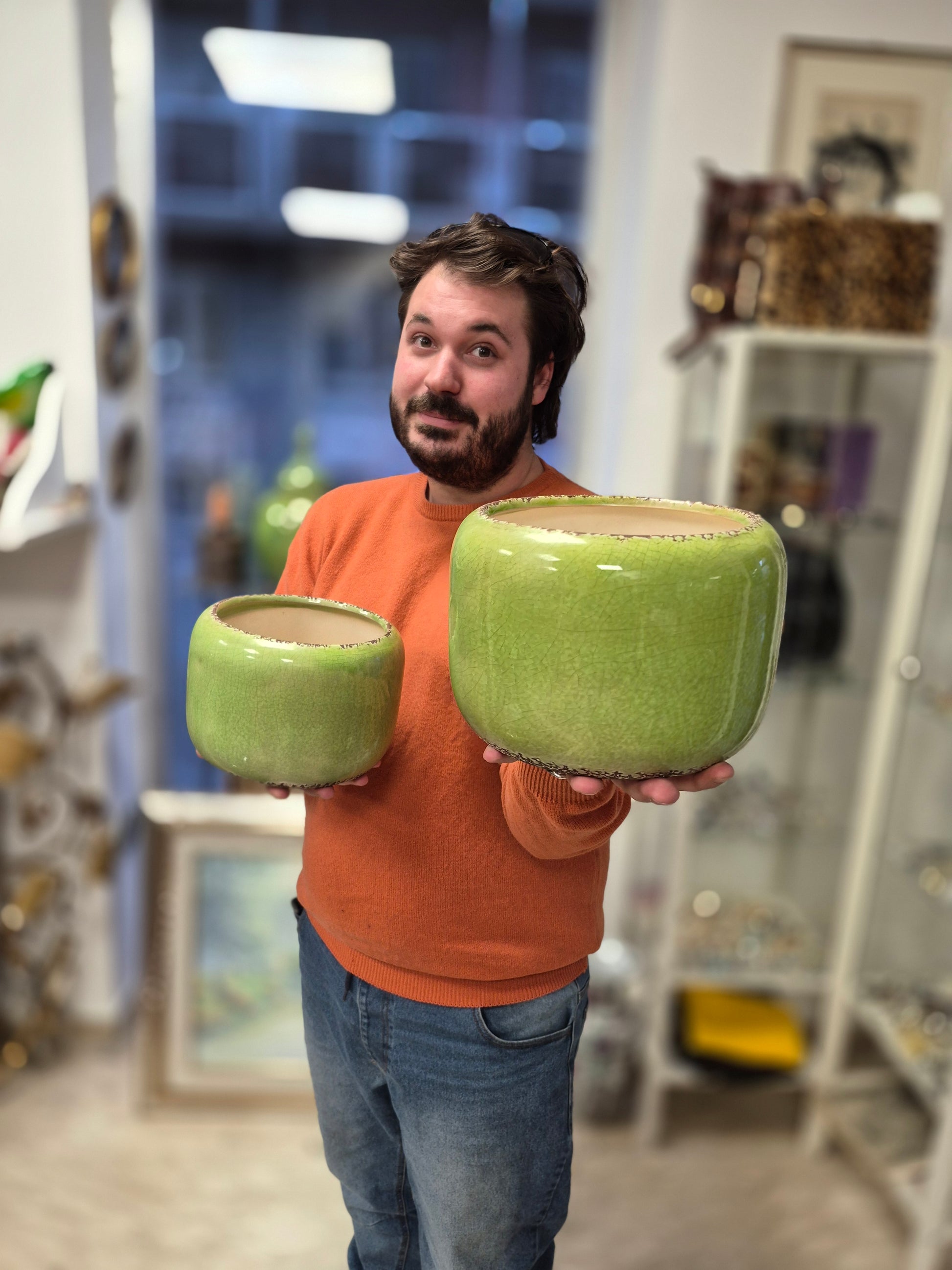Coppia di cachepots in ceramica smaltata verde