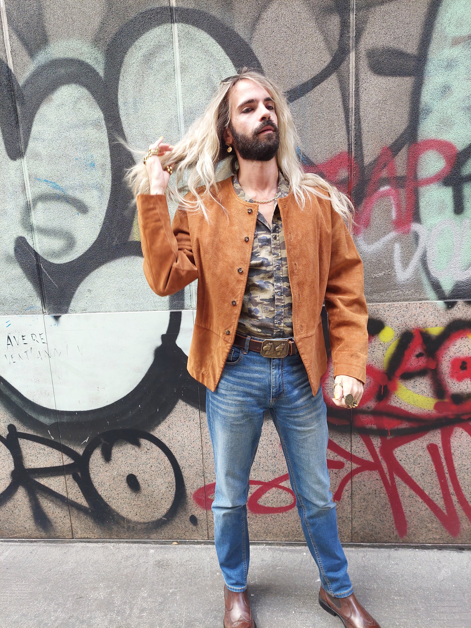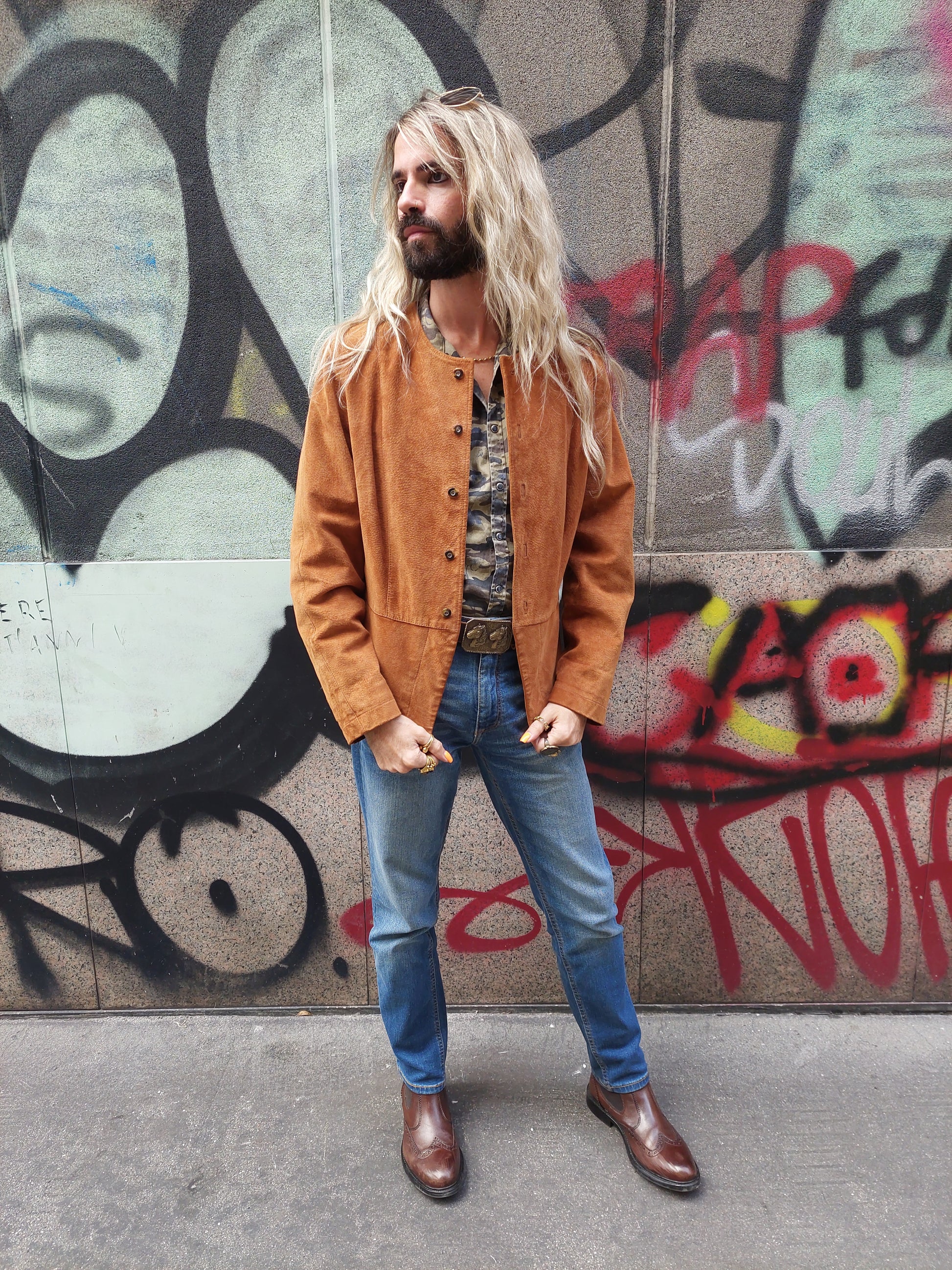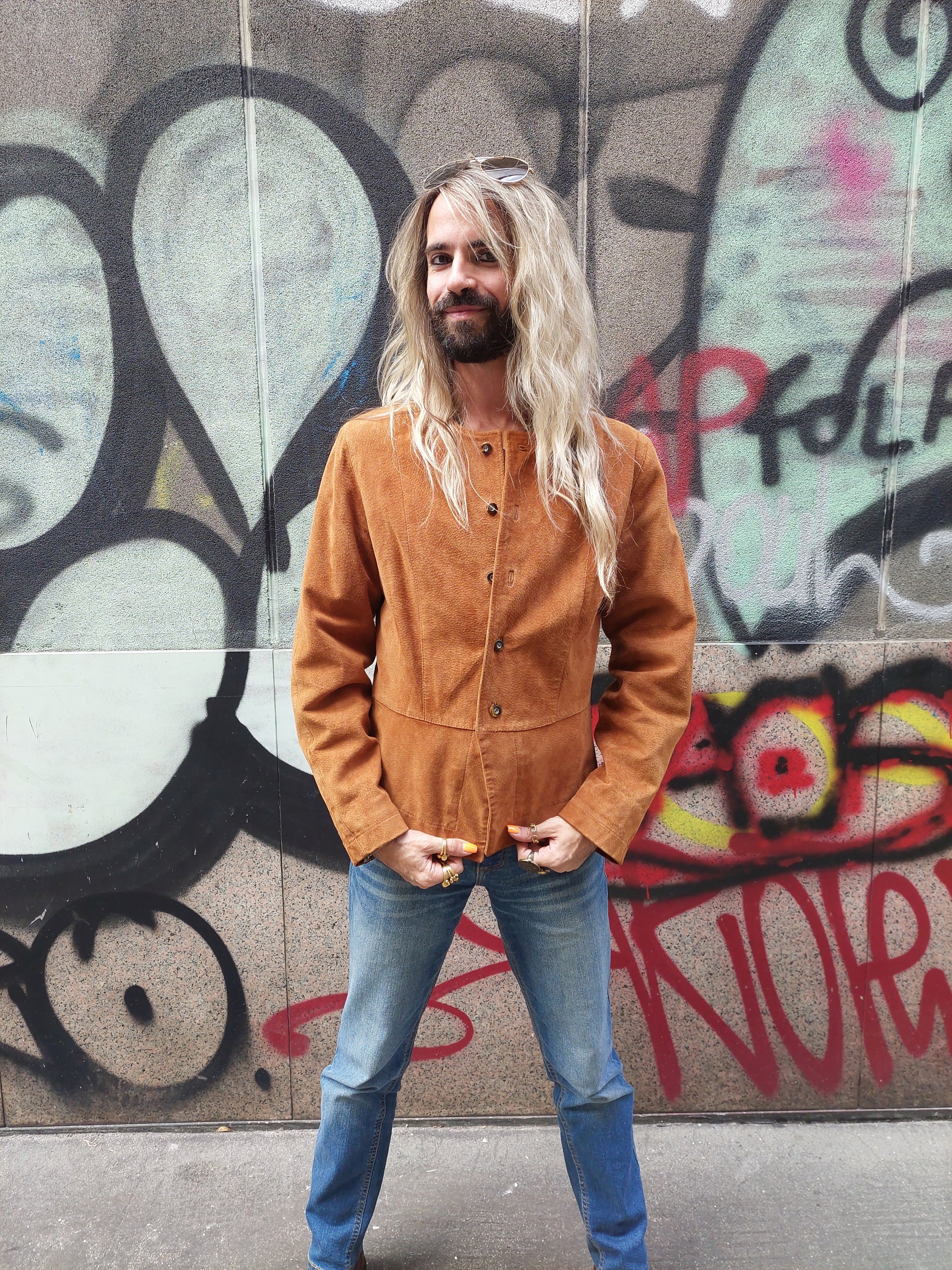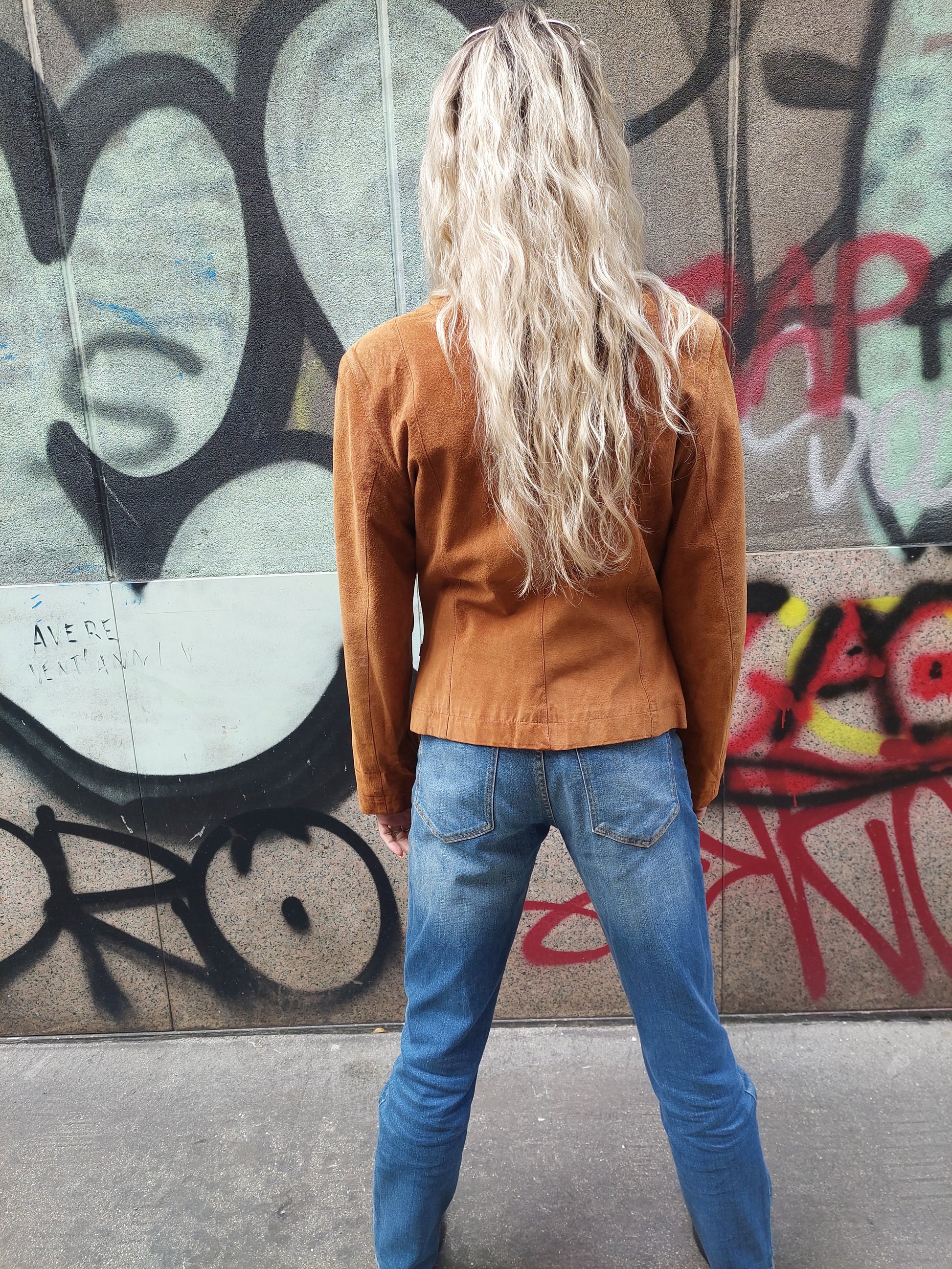 Giacchino in renna, con bottoni; la fodera all' interno è color viola cangiante.