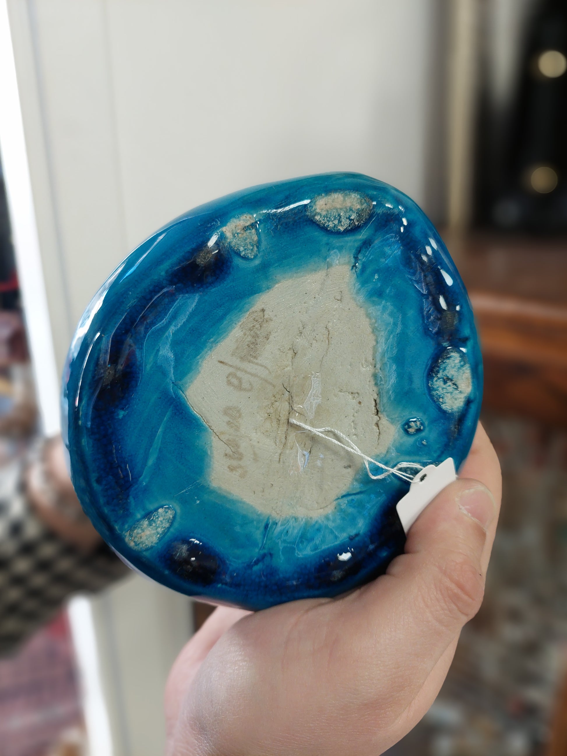 Vaso giapponese in ceramica smaltata, di colore azzurro, raffigurante la divinità della ricchezza Daikoku; risalente agli anni '50.
